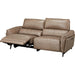 This is a three-seater, dual-motorized sofa made of leather (SK).
