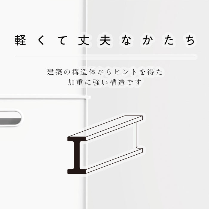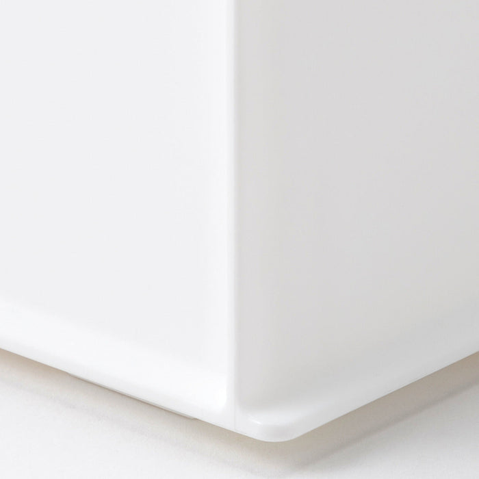 角の丸みがなくなり、正面持ち手リブがなくなったことで、住空間に溶け込む直線的なかたちとなり、サイズ違いで組み合わせても、ピタッとそろいます。