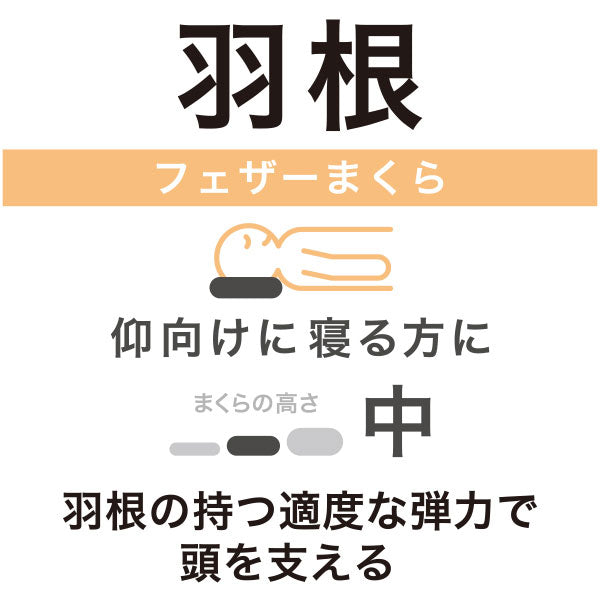 抗菌防臭。羽根の持つ適度な弾力で頭を支えます。仰向けに寝る方におすすめ