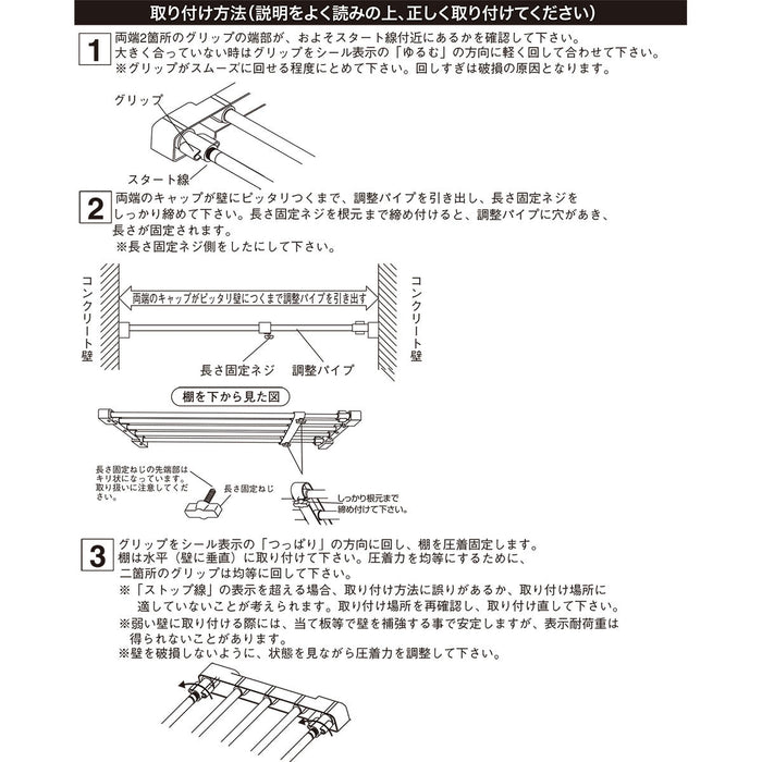 ・パイプに防錆油が付着していることがあります。使用には問題ありませんが衣服に付くおそれがありますのでふき取ってから使用してください。
